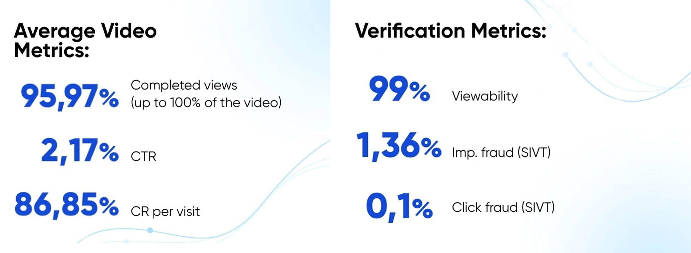 The advertising campaign metrics confirmed the effectiveness of placements on OLV inventory within the GPM Partner Network. The team also achieved high video view rates.