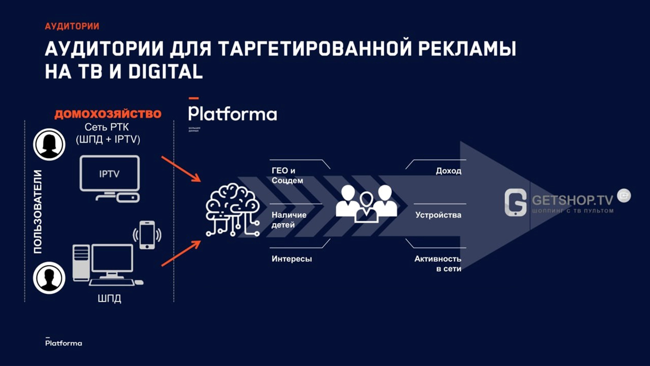 Today, millions of Russians watch TV via set-top boxes connected to the network. This combination of television and Internet has opened up new opportunities for targeting on TV. Huge amounts of anonymized data on purchases in supermarkets and digital interests can now be compared with TV viewing to focus direct TV advertising on a specific target audience. This approach offers TV advertisement a new life and makes its effectiveness clearly measurable. We have learned not only to create narrow target audience segments for specific client requests, but also to compare the IDs of those who see an advertisement on TV and who make purchases in stores during a certain period. Advertisers will therefore be able to see concrete returns from TV campaigns.