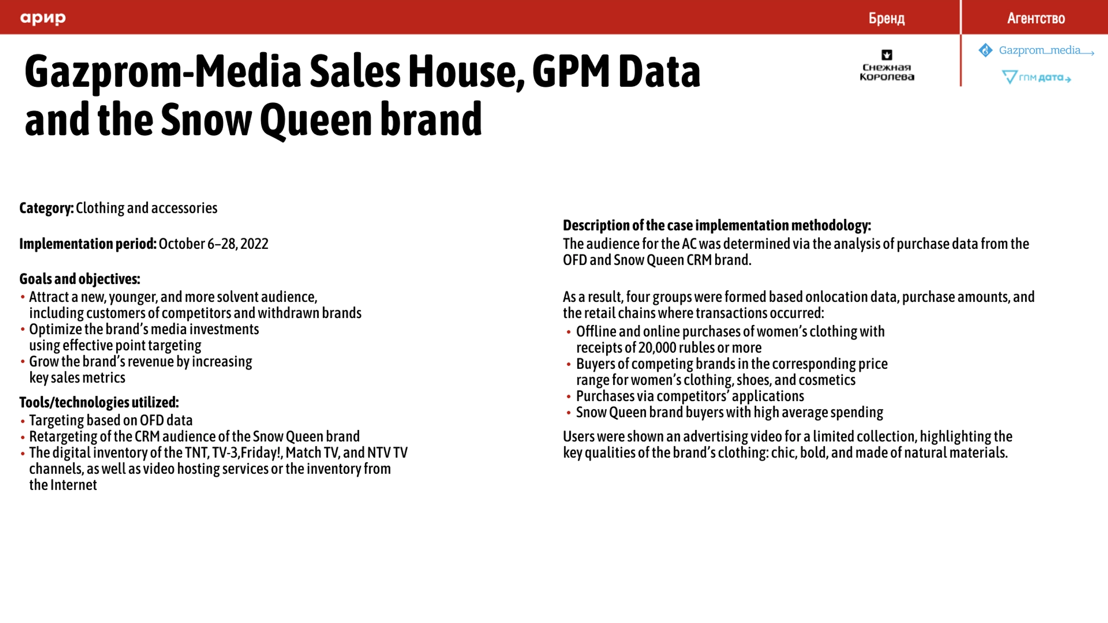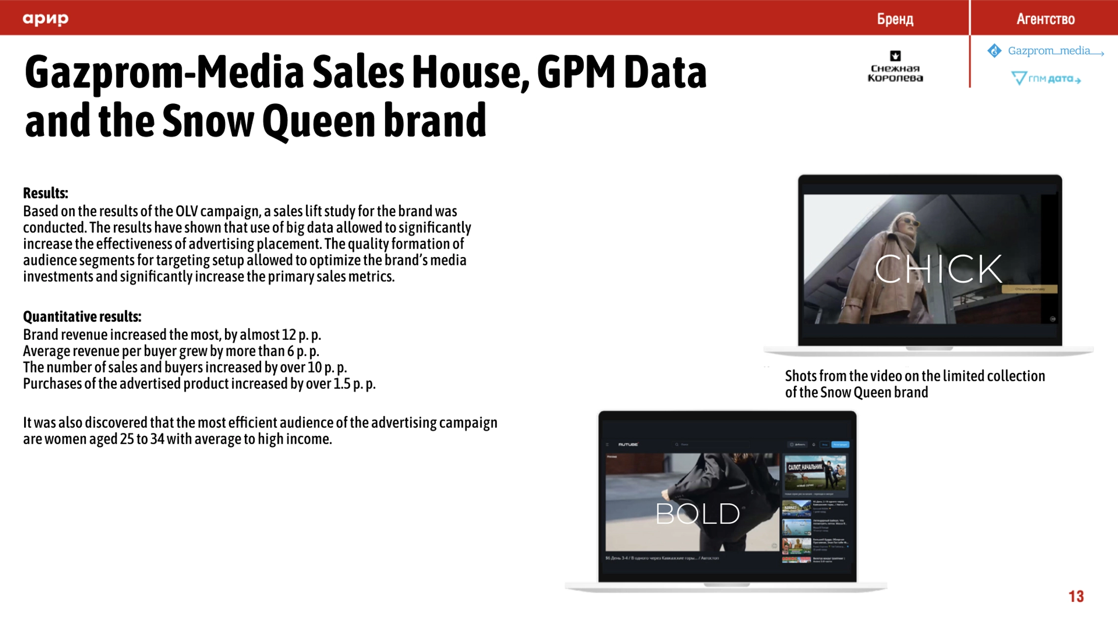 A case study by Gazprom-Media Sales House, GPM Data, and Snow Queen in the case book by the Association for the Development of Interactive Advertising Online Branding Committee!