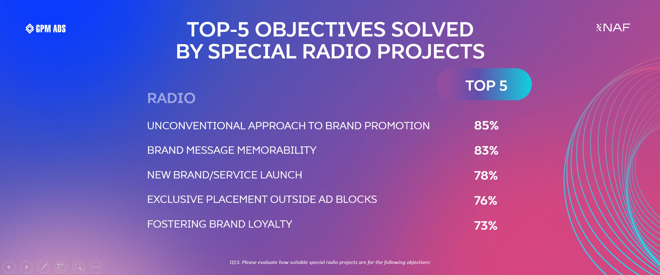 The findings of the first wave of the industry study on special radio projects highlight the vector of development for advertising strategies focused on creativity and high reach. The evidence base for the tool’s effectiveness gives advertisers confidence that their investment in special radio projects is justified and delivers tangible business outcomes.