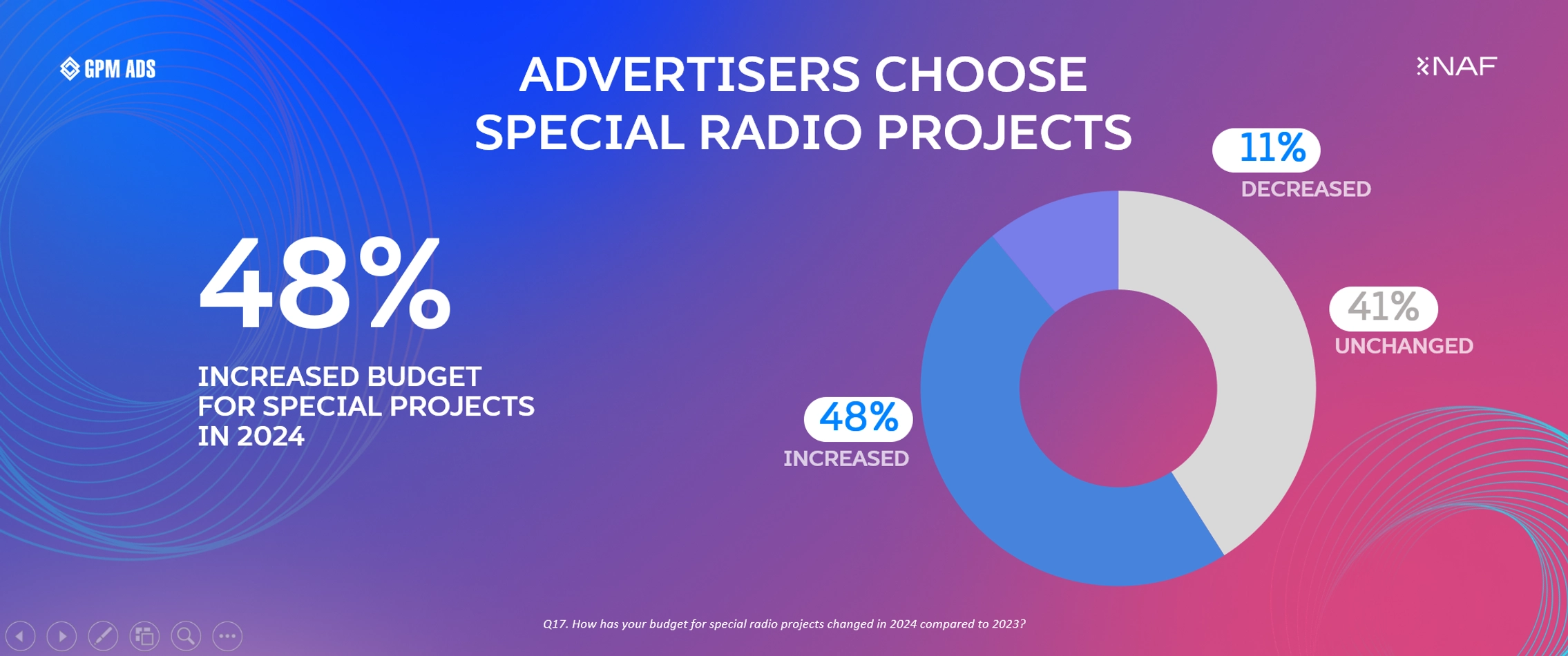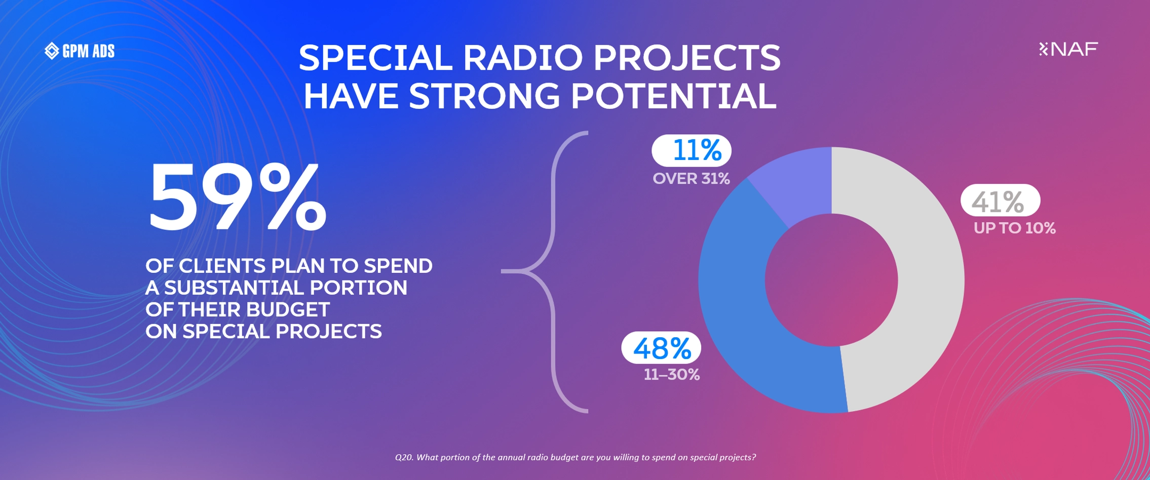 Currently, 59% of advertisers are willing to allocate more than 11% of their radio budgets to special projects, underscoring their growing role in marketing strategies.
