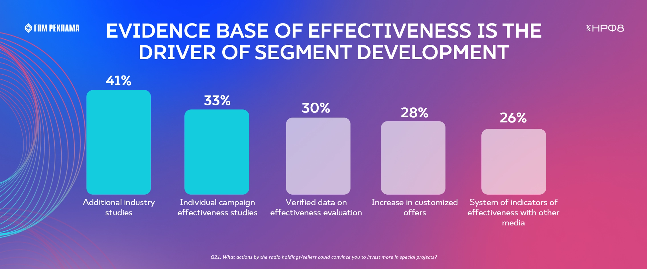 Study contributors: GPM Ads (sales house of Gazprom-Media Holding), Russian Media Group (RMG) and Krutoy Media radio holdings, as well as OMD agency, with the support of RACA, Analytical Center of RACA/ADIA/RAMS.
