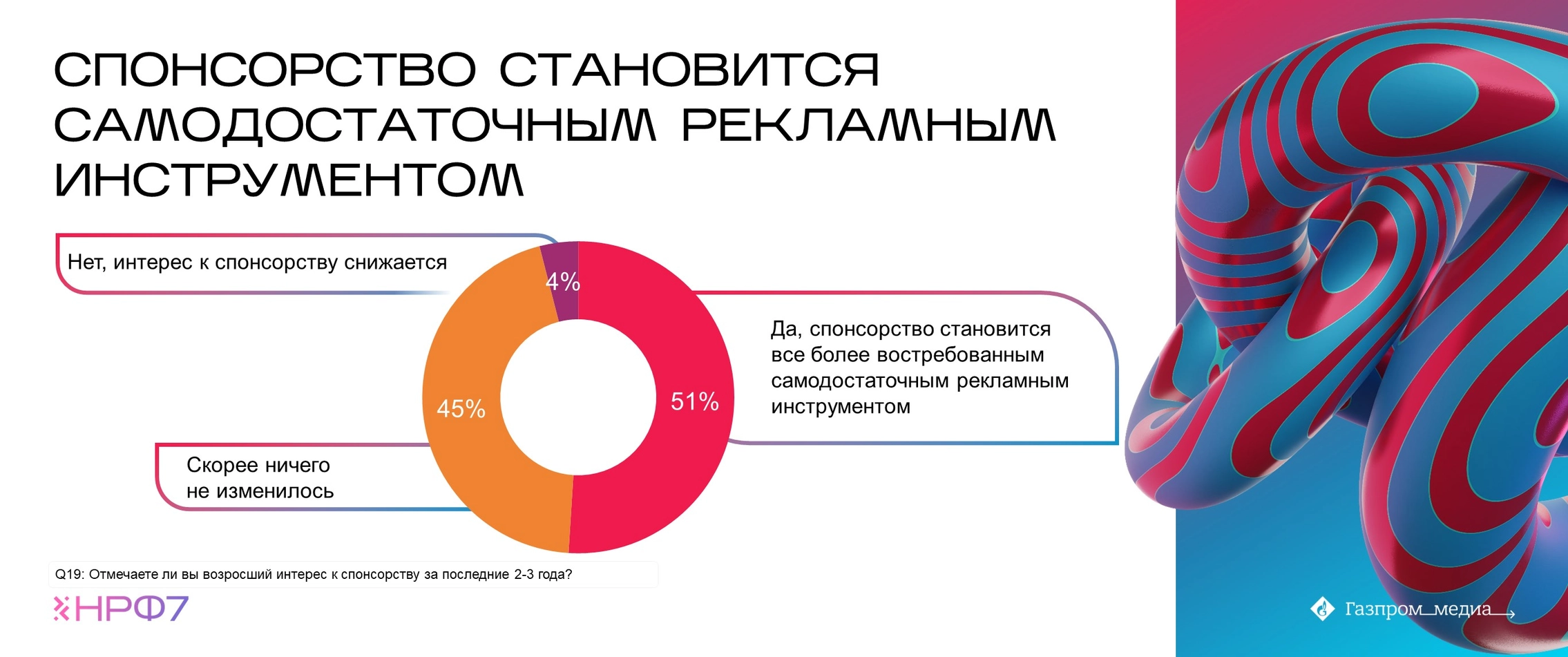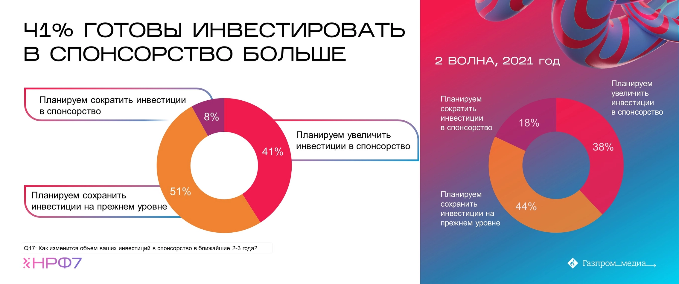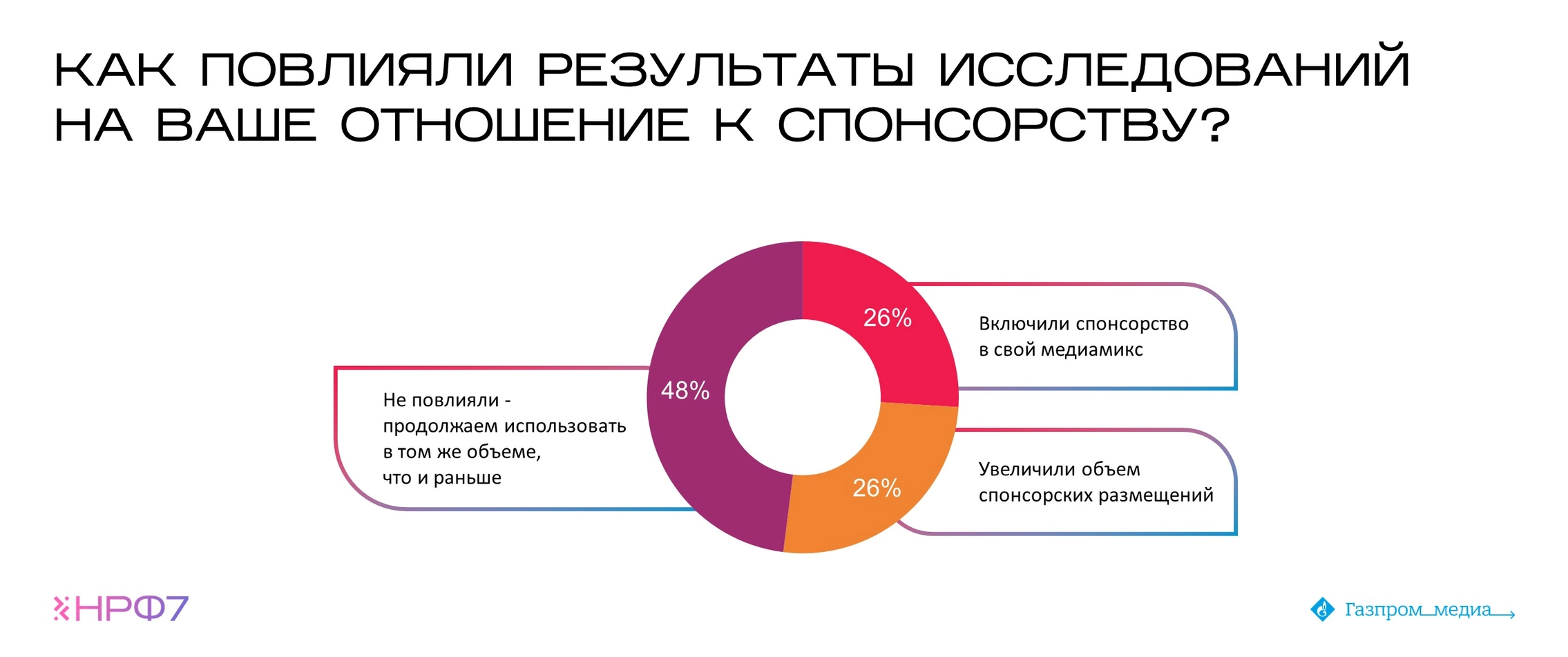26% респондентов после знакомства с данными предыдущих волн включили спонсорство в свой медиамикс, а еще 26% — увеличили объем размещений.
