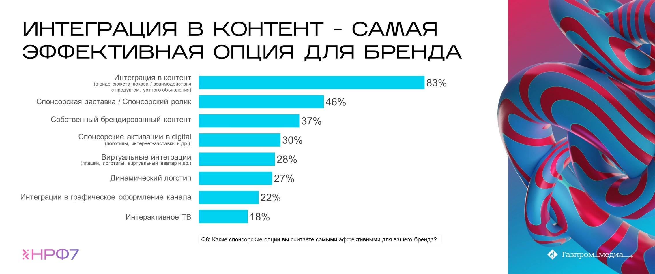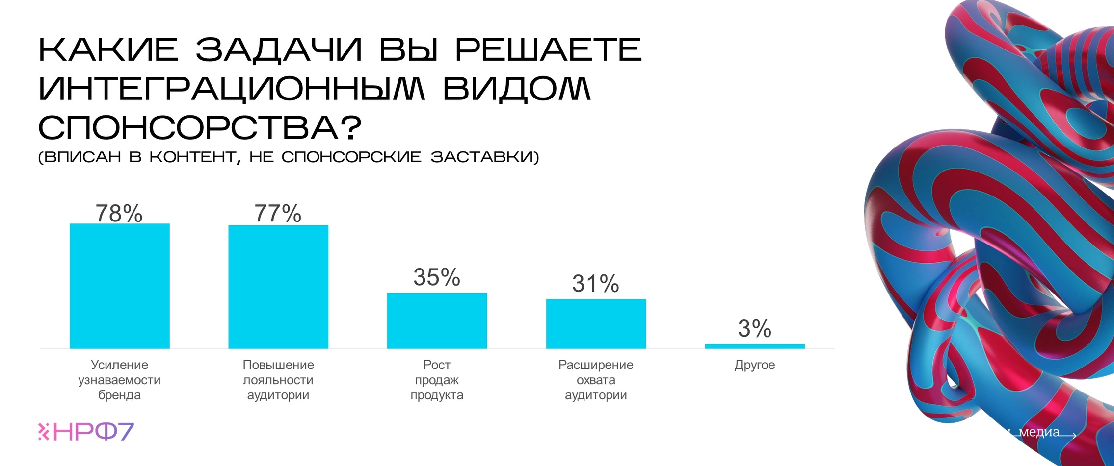 При этом респонденты считают, что спонсорская интеграция в контент — самое эффективное решение этих задач.